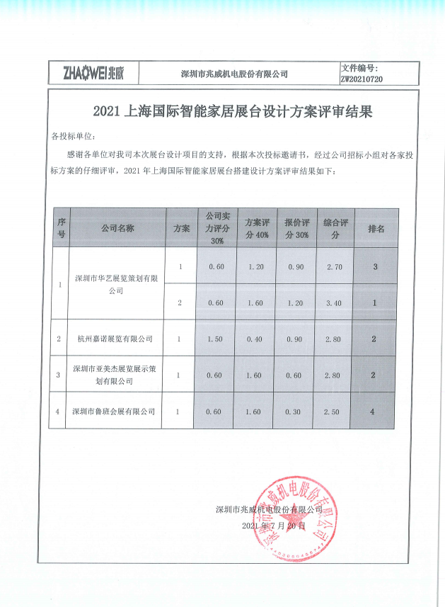 主頁 > 招標中標發布 > 2021年上海國際智能家居展臺設計方案評審結果